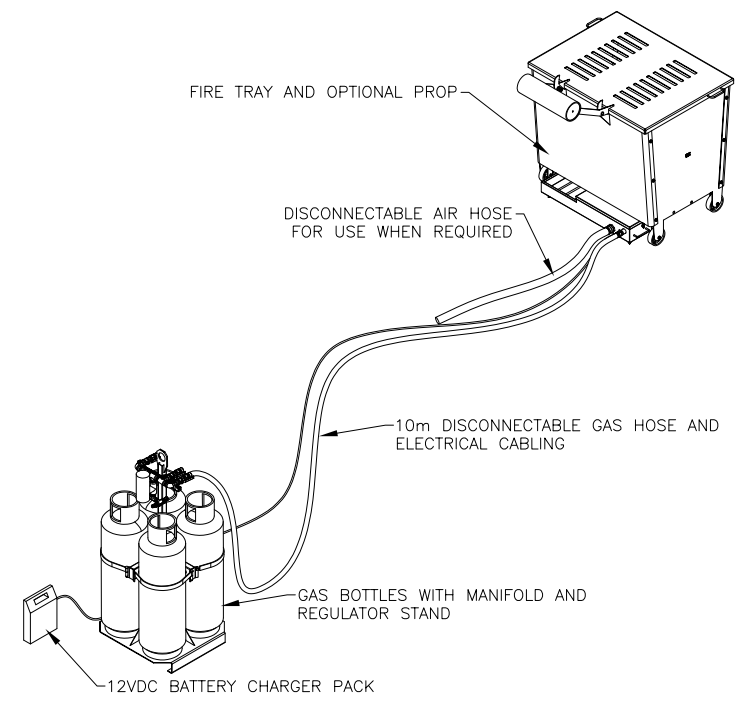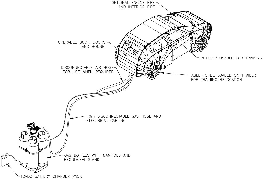 - Incorporates safety shut-down features that operate the instant the instructor's finger is removed from the 'dead man' button.
